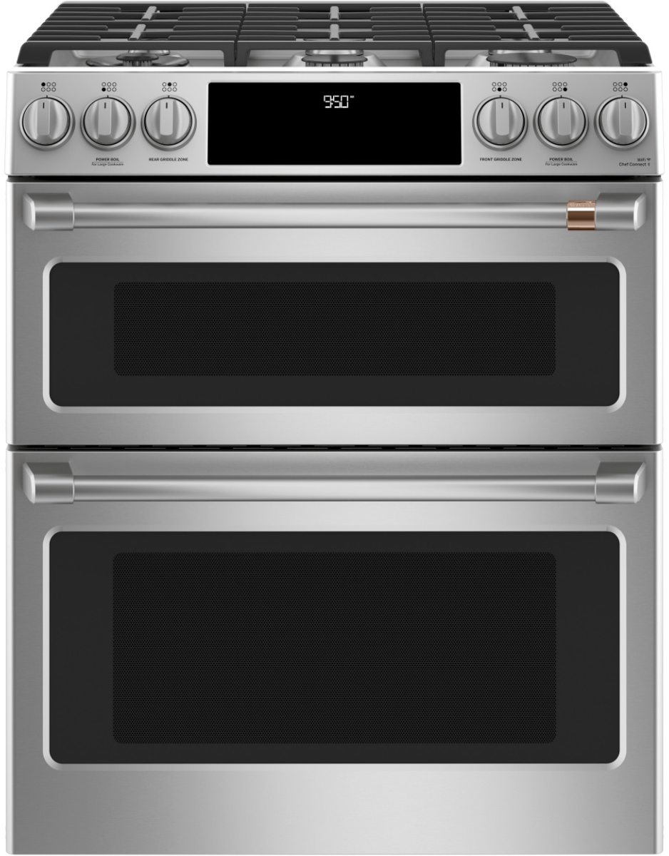 Explore your love of entertaining. This Dual Fuel slide-in range unites the power of a gas cooktop with the precision of an electric oven. The industry’s first edge-to-edge cooktop with six versatile burners also includes an integrated griddle to easily handle large meals and family favorites. And a double oven lets you prepare different foods at different temperatures at the exact same time.Read More