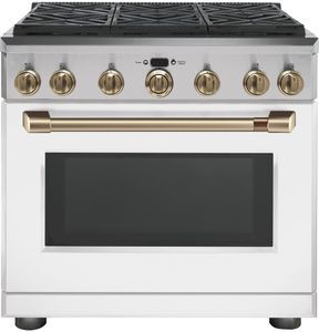 Achieve incredible results with a 36" professional range that combines reverse-air convection technology, an infrared broil and a gas burner inside a 6.2 cu. ft. capacity oven. Plus, six full-range burners go all the way from delicate simmering to a powerful sear for precise cooktop control.Read More