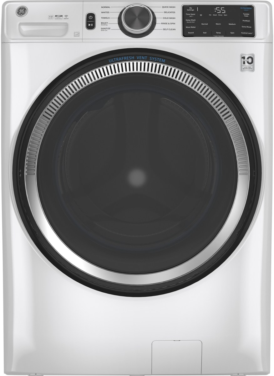 Care for clothes in fewer steps with this GE front-load washer. The UltraFresh vent system with OdorBlock eliminates excess moisture to help prevent odors, ensuring your washer stays fresh and clean, and the Microban antimicrobial technology delivers protection that lives on load after load. This GE front-load washer has built-in Wi-Fi so you can control your laundry from anywhere.Read More