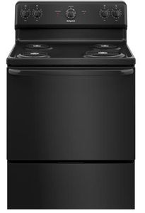 Porcelain upswept cooktop raised edges contain spills, while the surface is easy to wipe clean. Drip bowls contain spills and remove for easy cleaning. Removable full-width storage drawer store cookware or kitchen accessories.Read More
