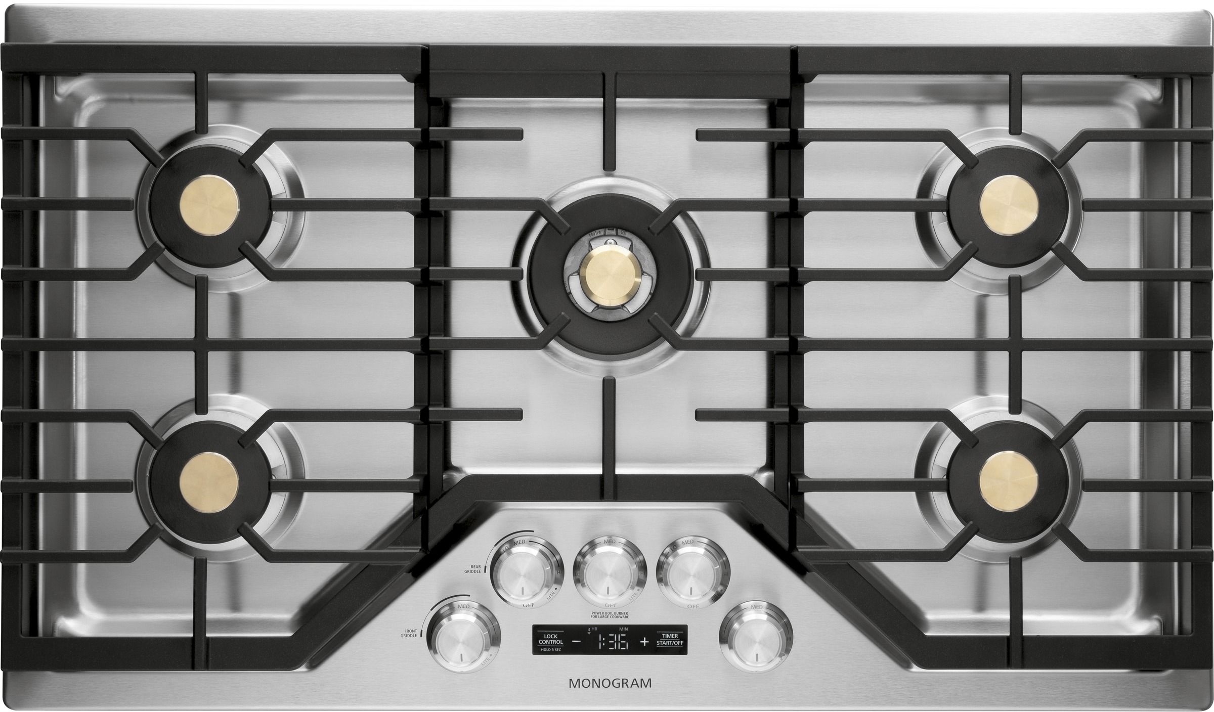 Monogram® 36" Stainless Steel Deep-Recessed Gas Cooktop with 5 burners, precision knobs and bluetooth connectivityRead More
