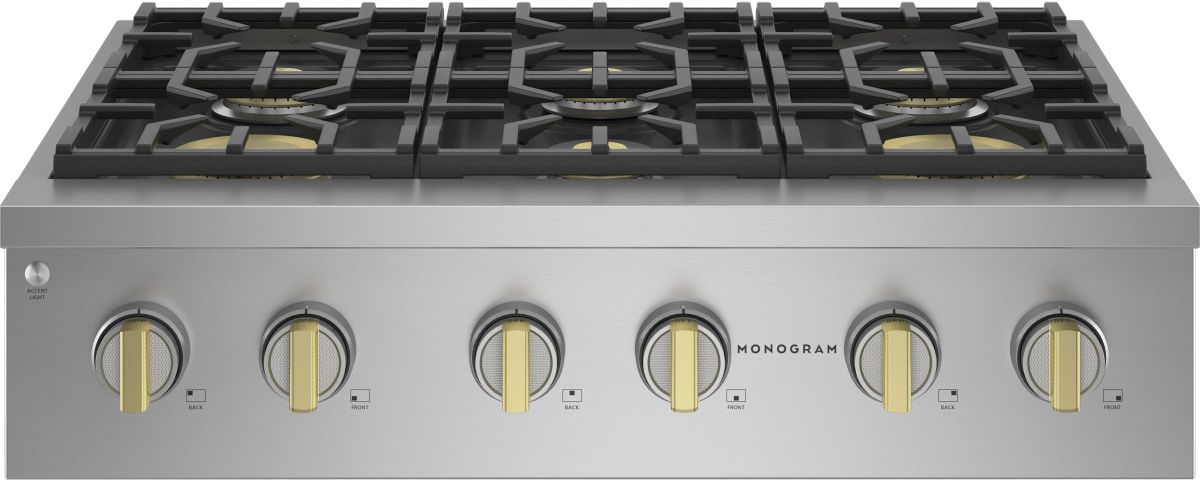 With an unmatched attention to detail, all knobs on the new Monogram Pro ranges and range tops come with solid brass accents